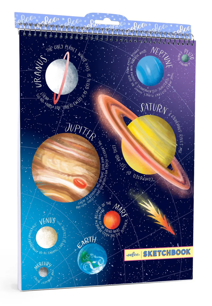 Explore our solar system with this delightful sketchbook illustrated by Uta Krogmann. Aglow with all our planetary neighbors, including the distant dwarf planet Pluto, this spiral-bound pad will make a lovely addition to any young artist's supplies. Perfect for sketching sessions on-the-go or for art projects around the house. Pairs with the matching Our Planets 6 Double-Sided Metallic & Fluorescent Pencils.