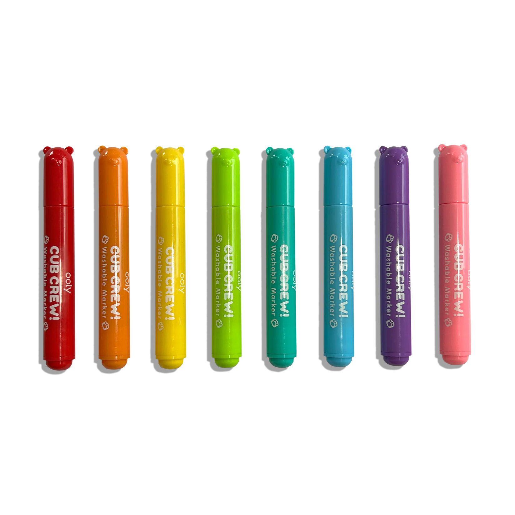 Let your creativity run wild with the Cub Crew Washable Markers! This set of 8 cute markers features bold, brilliant colors that make coloring and drawing a joy for artists of all ages. Designed for kids, teens, and even adults, these washable markers glide smoothly across the page, making them perfect for everything from doodles to detailed artwork.