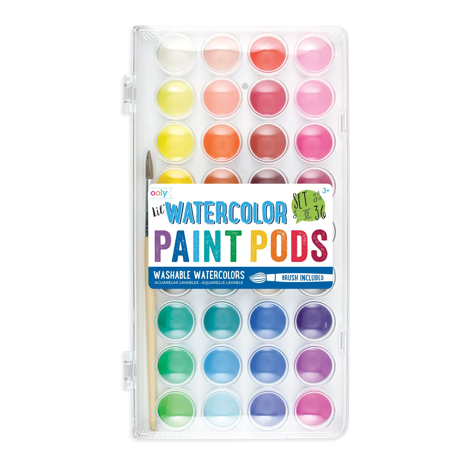 Bring on the color with the Lil' Watercolor Paint Pods Paint Set—a splash-tastic way for young artists to express themselves! This washable watercolor paint set has 36 vibrant colors all packed into a handy, travel-ready case, making it perfect for creative kids who love to paint anywhere. Each washable paint pod makes cleanup a breeze, so parents can sit back while kids swirl, blend, and brush their way through endless imaginative fun. With this travel watercolor paint set, every day can be an art adventure—whether at home, at school, or on the go! Little artists can create everything from rainbow skies to colorful critters, exploring their creativity with each brushstroke. Wherever inspiration takes them, this compact set has everything they need to bring their ideas to life, one bold color at a time!