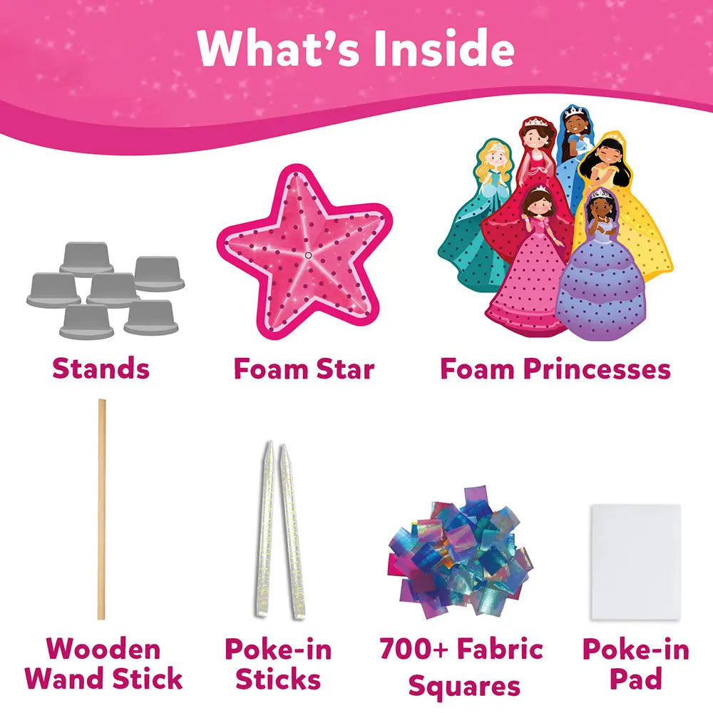Let imagination reign with Skillmatics Poke-in Art: Magical Princesses! Kids will decorate dazzling gowns by poking colorful fabric squares into foam princesses, then craft their own magical wand for hours of enchanted pretend play—all without the mess!