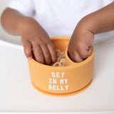 Our Silicone divided bowl suctions to the table, has a curved lip to encourage self-feeding, and grows with your child from infant purees to late-night ice cream sundaes.