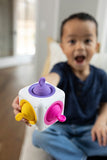 Built into each side of this sturdy, rounded cube is a soft silicone bubble with a tab to grab and pull. Fingers can't help but push them, pull them, and pop them again and again.
