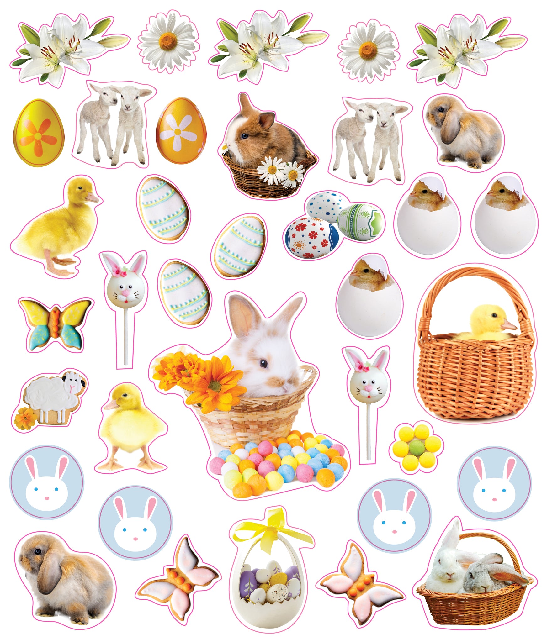 Fuzzy chicks and bouncy bunnies. Jelly beans, springtime flowers, pretty painted eggs, and wobbly-legged lambs. Use them to decorate notebooks, cards, scrapbooks, crafts, party invitations or create a lively scene on the book’s inside covers—which double as a glossy illustrated background. Then change it up when the mood strikes.