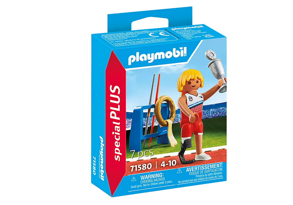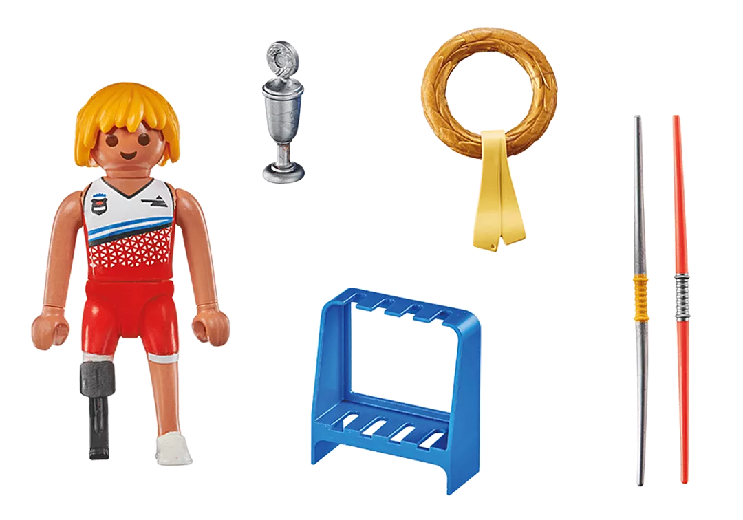 Join the excitement of the Paralympics with PLAYMOBIL's athletic Javelin Thrower. Months of preparation have led to some pretty incredible throws. The beautifully crafted Special Plus Sets are perfect little gifts for children aged 4 and up. Whether as standalone figures or combined with other PLAYMOBIL worlds, Special Plus Figures guarantee endless fun!