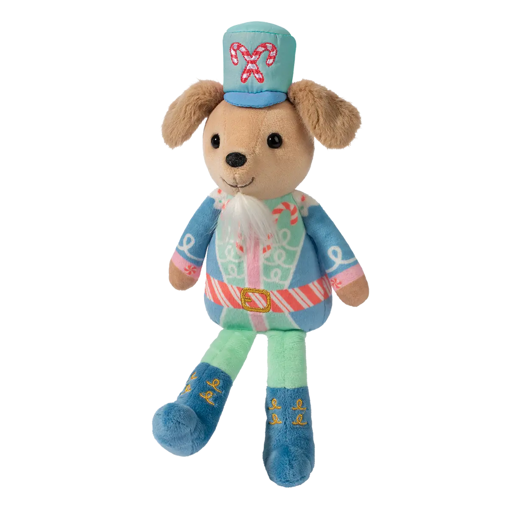 His fur is made of buttery-soft plush in a warm toffee shade, with velvety paws and floppy ears perfect for cuddling. With his gentle, embroidered eyes and confident smile, he’s always ready to lead a magical Nutcracker play, starring as the brave prince who saves the day.