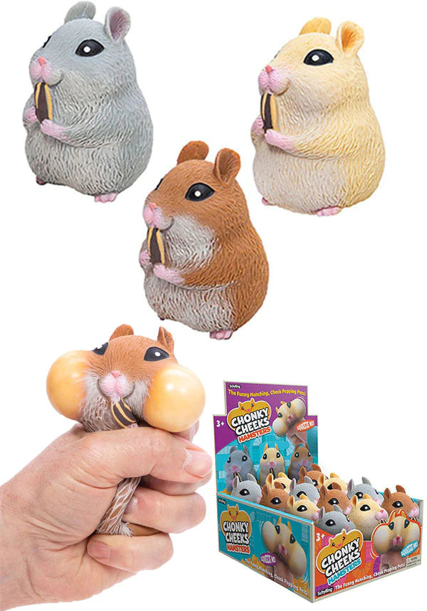The Schylling Chonky Cheeks Hamster is a hilarious fidget toy that's perfect for sensory play or stress relief. Squeeze these adorable little hamsters and watch as they blow up their cheeks, as if they're storing up peanuts for later! These lovable critters are sure to bring a smile to your face and provide endless entertainment.