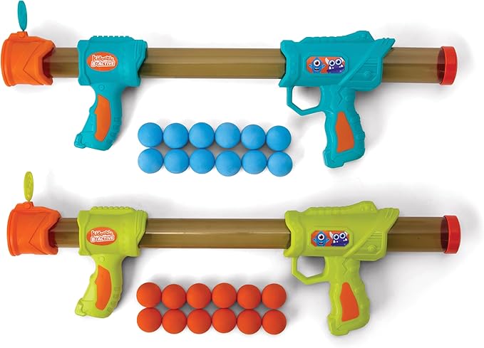 • Complete Target Shooting Set: Includes standing target, 2 foam ball blasters, and 20 foam balls (blue & orange).