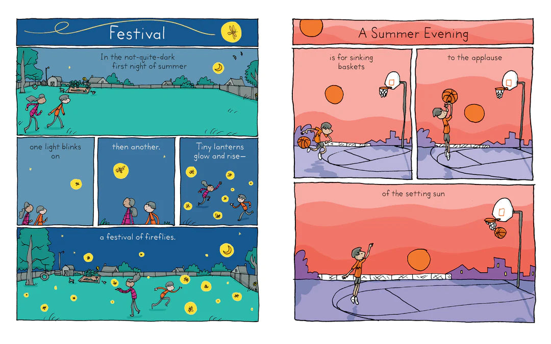 From the cloud-gazing hours of early spring to the lost bicycles of late autumn, Grant Snider’s brilliantly illustrated Poetry Comics will take you climbing, floating, swimming, and tumbling through all the year’s ups, downs, and in-betweens. He proves that absolutely everything, momentous or minuscule, is worthy of attention, whether snail shells, building blocks, the lamented late bus, or the rare joy of unscuffed shoes. These poems explore everything you never thought to write a poem about, and they’re so fun to read you’ll want to write one yourself. Not to worry, there’s a poem for that, too!