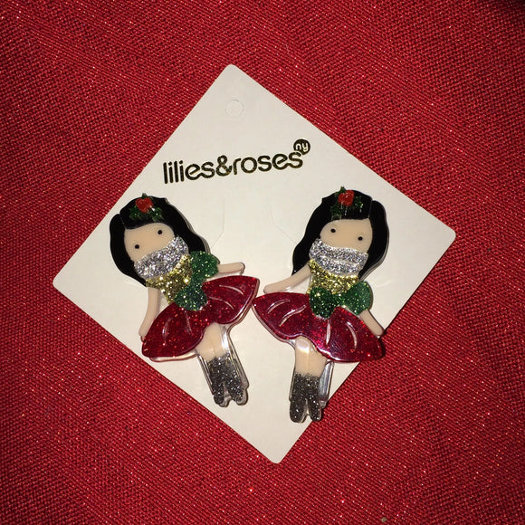 Lilies & Roses Christmas Wreath & Snow Globe Alligator Clips