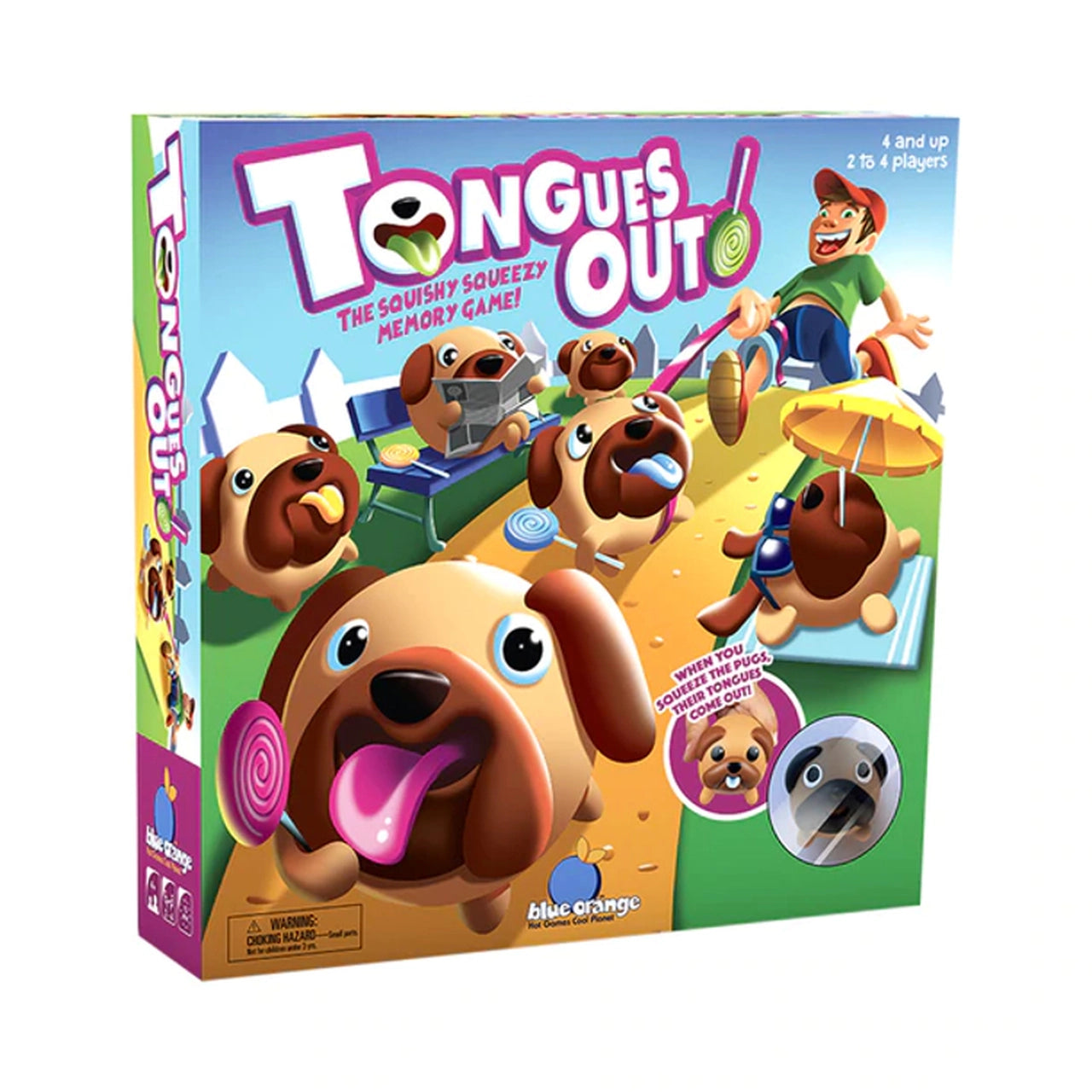 Tongues Out! is a game about pugs who ate all the lollipops. The lollipops dyed their tongues different colors, and it's up to players to figure which dog ate which lollipop. The first player to match six lollipops to the appropriate pugs' tongues wins the game.