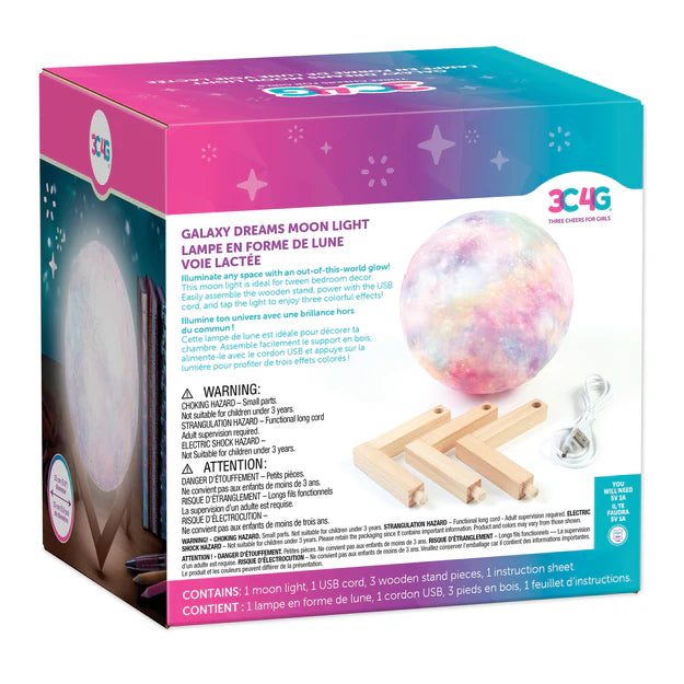 Have a world (or a moon) at your fingertips! This celestial orb glows, providing great ambiance to any tween’s space. Tap to turn the light on, then tap again to change the color effect! Rotate through 3 lighting schemes and watch how the light shows different aspects of the out-of-this-world design. Complete with an easy-to-assemble wooden stand, setting up this moon light is a breeze. The moon light has a diameter of 15 cm (5.9”) and comes with a USB cord. This makes a great gift idea for tweens, whether it’s for a birthday bash, holiday, or just because. Perfect for ages 8+.