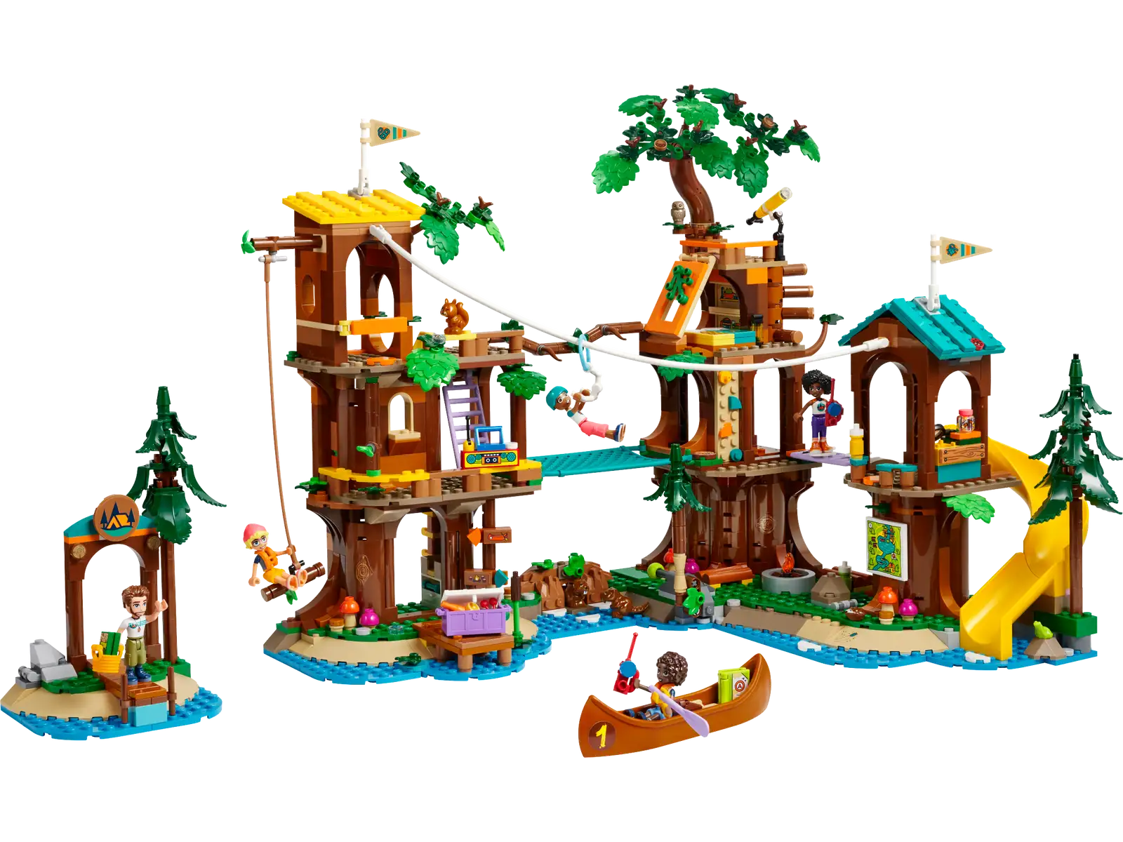 - A camping playset for kids – The LEGO® Friends Adventure Camp Tree House toy for girls and boys aged 8+ comes with 5 mini-dolls, lots of animal figures, a canoe and sports toy accessories
