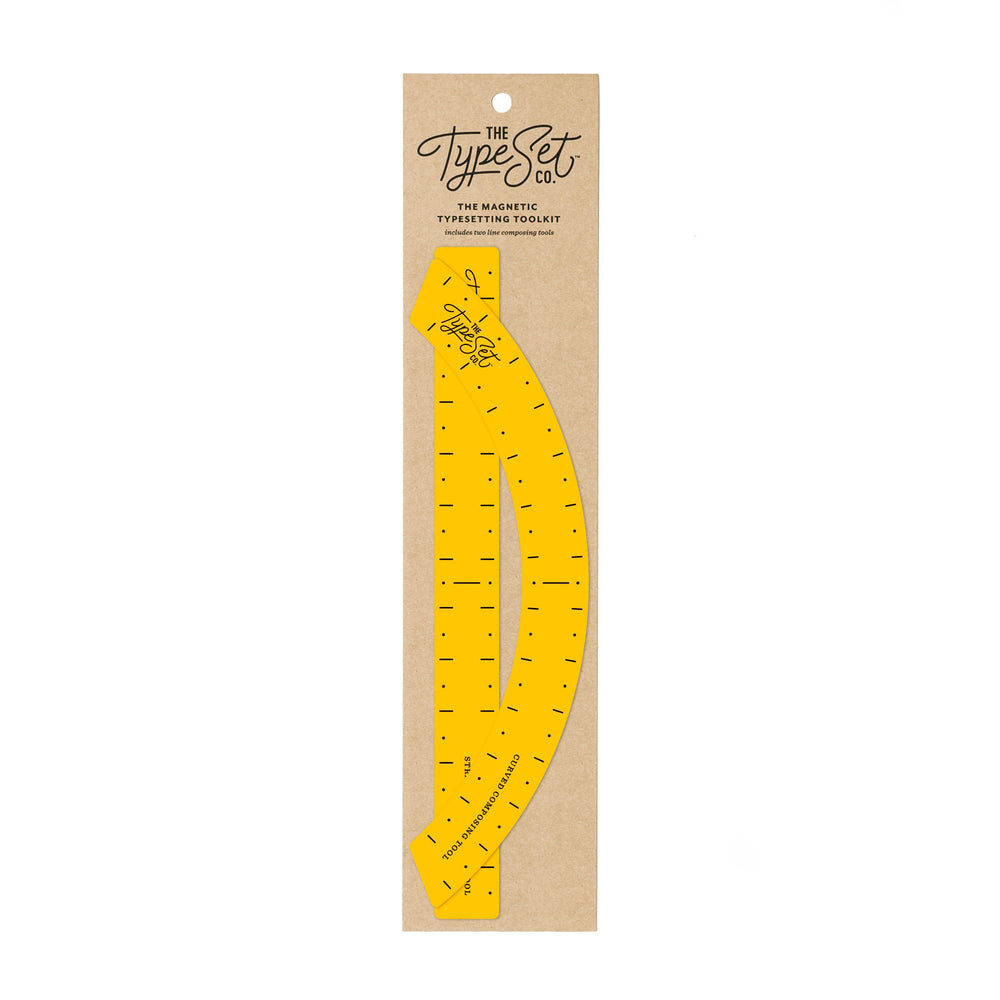 Typesetting is the conscious arrangement of letterforms into an elegant composition. We’ve created this toolkit to enable you to keep your copy neat and tidy. It's the perfect letter board accessory for the stylish and precise word nerd. Each kit contains one straight and one curved composing tool.