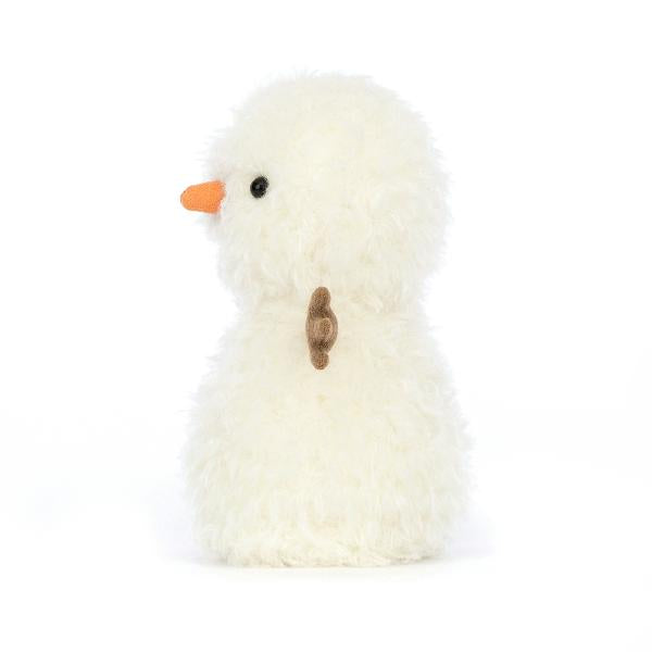 Little Snowman brings festive spirit all year long! Super snuggly in fuzzy white fur, this smiley snowman has cordy arms and a squishy carrot nose. With stitchy coal buttons, Little Snowman stays cuddle ready year round – no snow necessary!