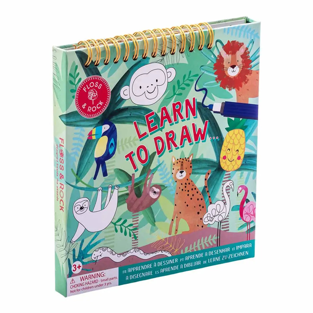 Become a budding artist with our Jungle themed Learn to Draw. Open the book to reveal 8 thick glossy pages, 3 color dry wipe pens with erasers and a draw and colour section to copy the image. Each page has a 3 step guide as to how to draw your masterpiece! The book folds almost flat with a magnetic closure and is perfect for travel and taking out and about. Reusable over and over again. Perfect for travel and taking out and about. Learn how to draw in 3 easy steps. 3 color dry wipe pens with erasers. Easy to flip pages. Folds away almost flat. Eco-friendly.Â