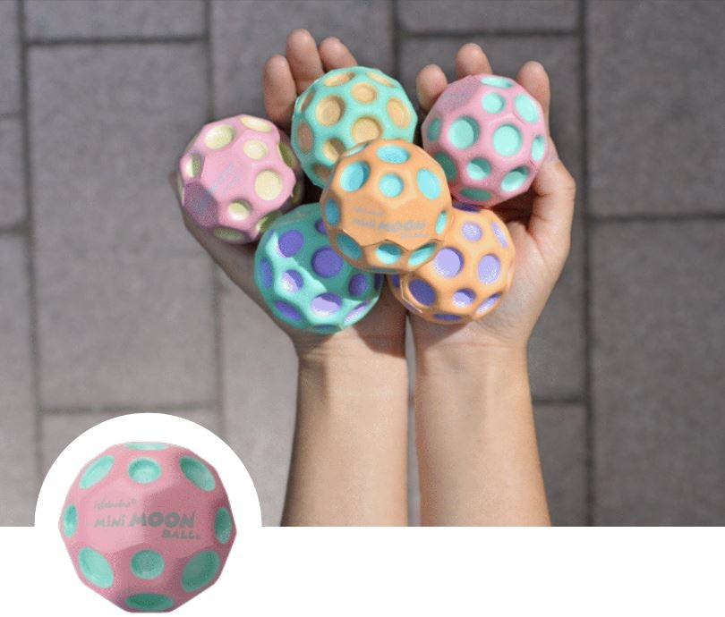 Bounce these babies. The mini Moons are 40% smaller in volume than the regular Moon Balls. But don't let their size fool you. They still bounce out of this world!