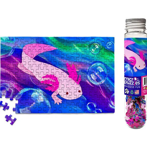 Swirling colors, dancing bubbles, and one fabulously odd little axolotl—this puzzle is pure underwater joy. It's bold, bright, and a little bit weird in the best way possible. A perfect gift, a quick mental getaway, or a treat-yourself moment. You won’t want to stop until the last piece clicks. 150 pieces - finished size is 4"x6"
