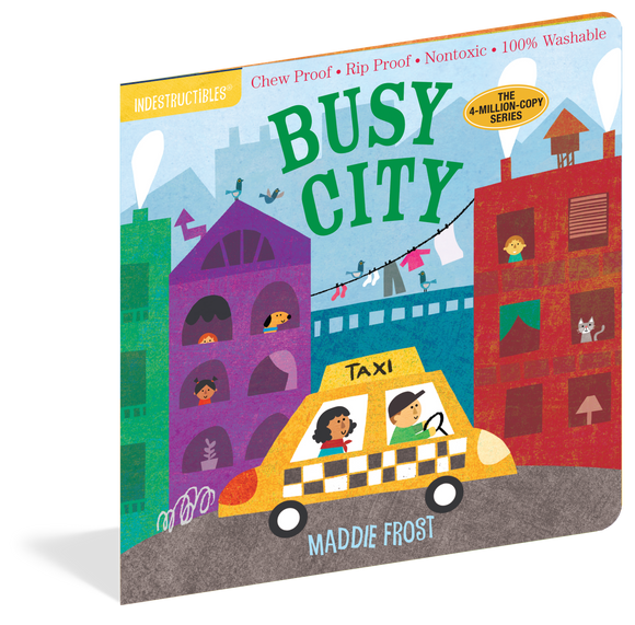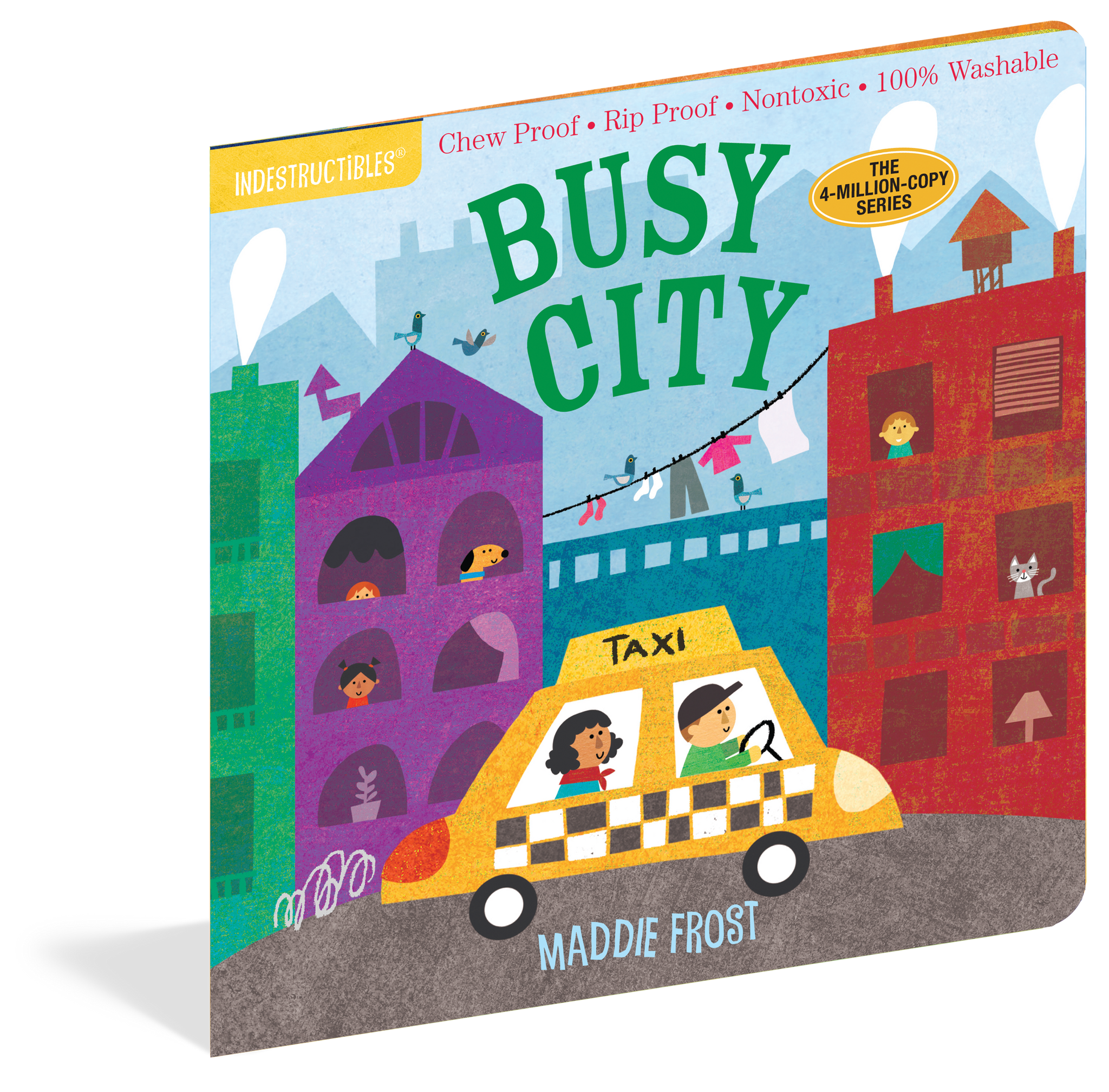 Busy City introduces babies to the bustling city, with lots of sights and sounds to experience on every page.