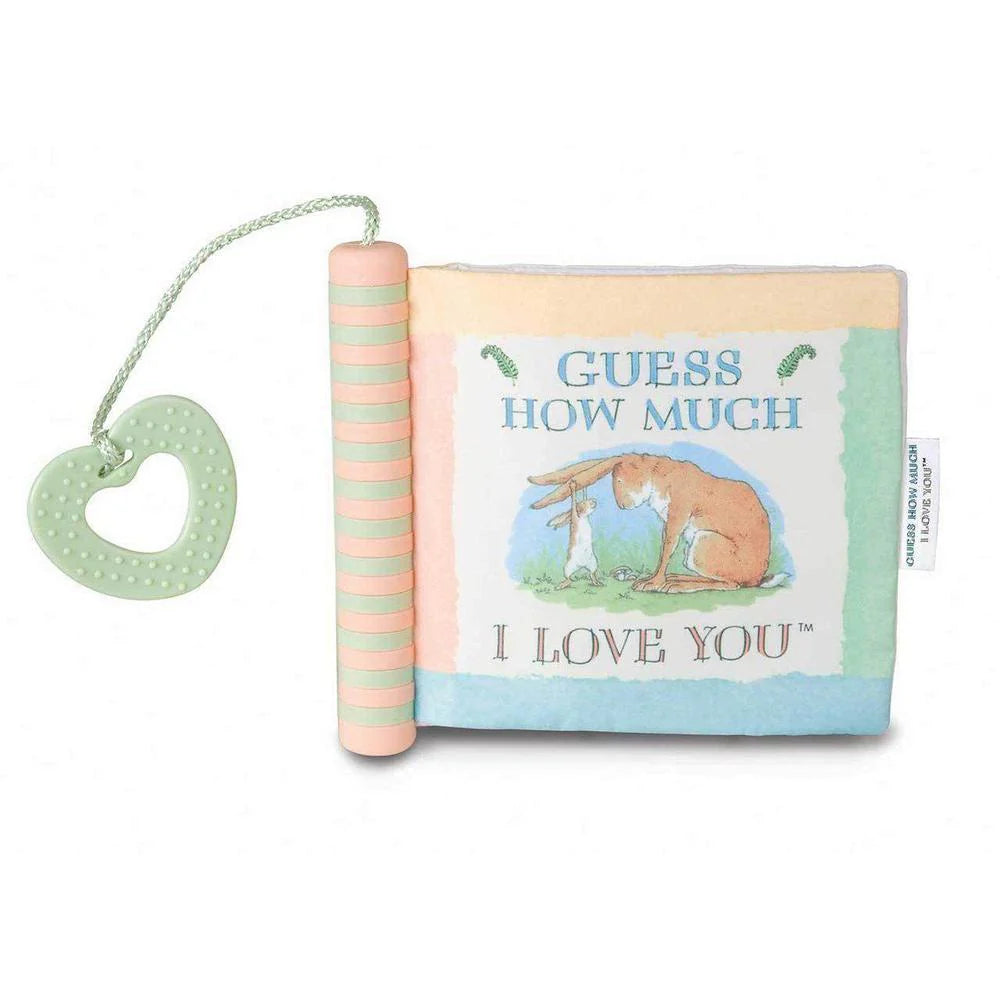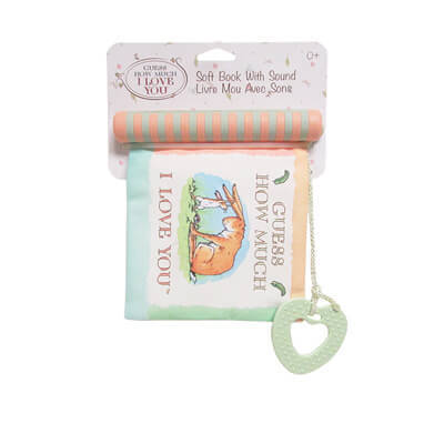 Guess How Much I Love You™ Soft Book is a delightful first book for the nursery or a sweet addition to baby's expanding library. This soft book tells the classic tale and features a 7-inch colorful teether spine and hanging teether heart for soothing tender gums. Awaiting discovery inside is a kissing sound and an audible "I Love You" message!