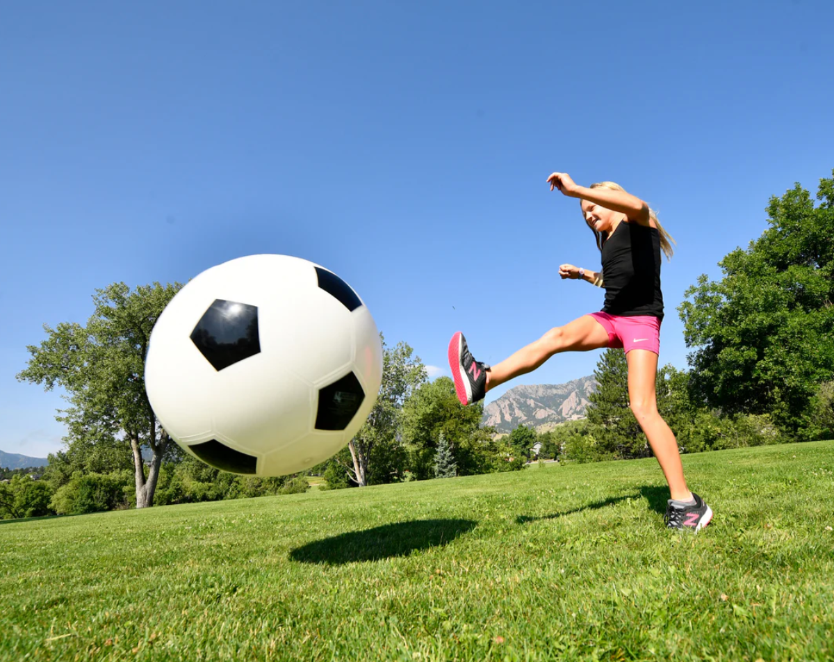 Add jumbo fun when kids play outside with our Jumbo Soccer Bounce Ball! This 30" bounce ball adds excitement to everyday soccer games for a few kids or even an entire team (or family!) to scrimmage!