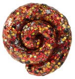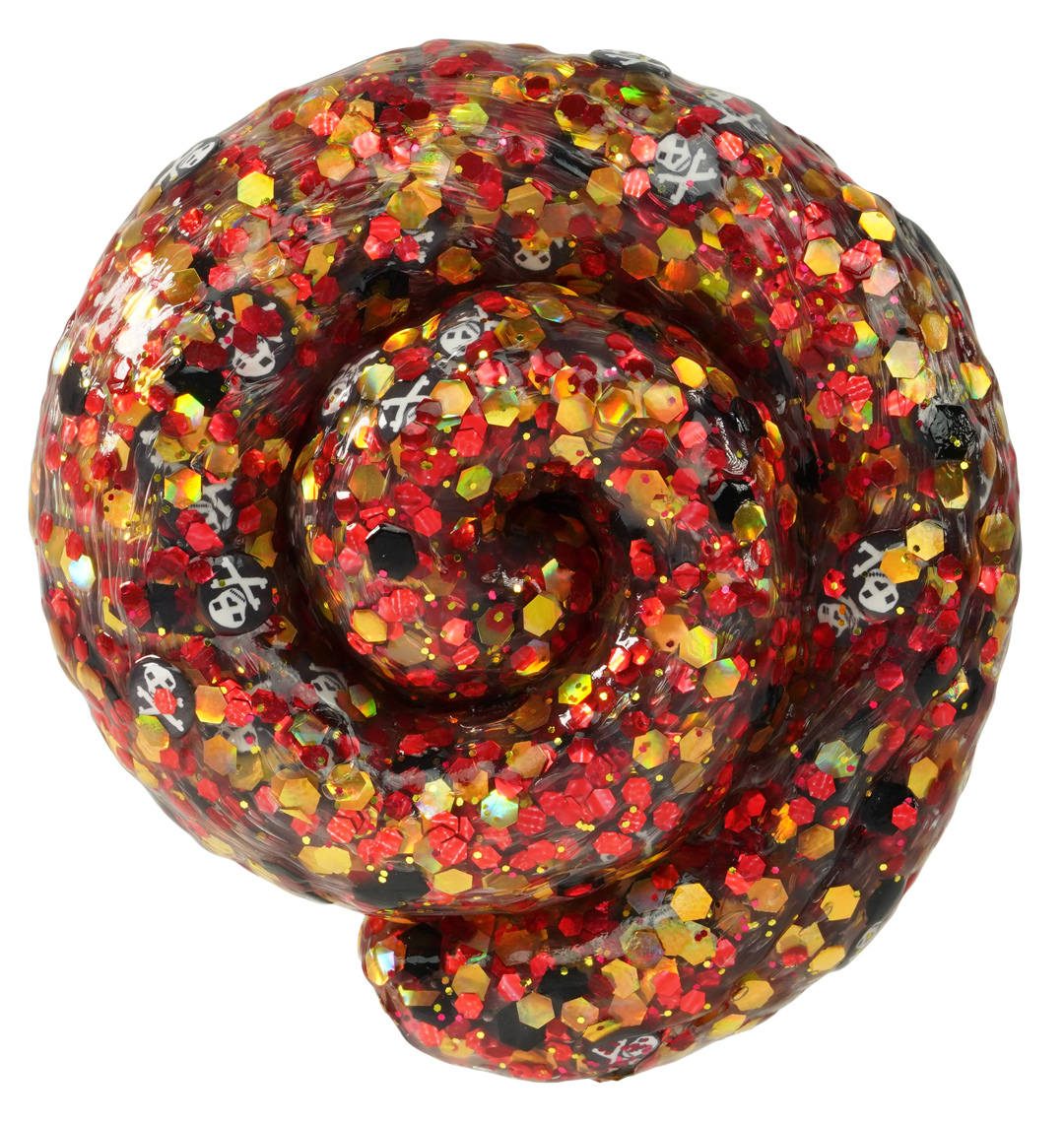 - Color: Clear base with red and gold sparkles and skull pieces