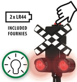 Warning – a train is passing by! Push the button on the railway crossing sign, start the red blinking light and let the train pass safely by. Well done! Let’s do another round. You’re in charge of the light signal, which is an important job.