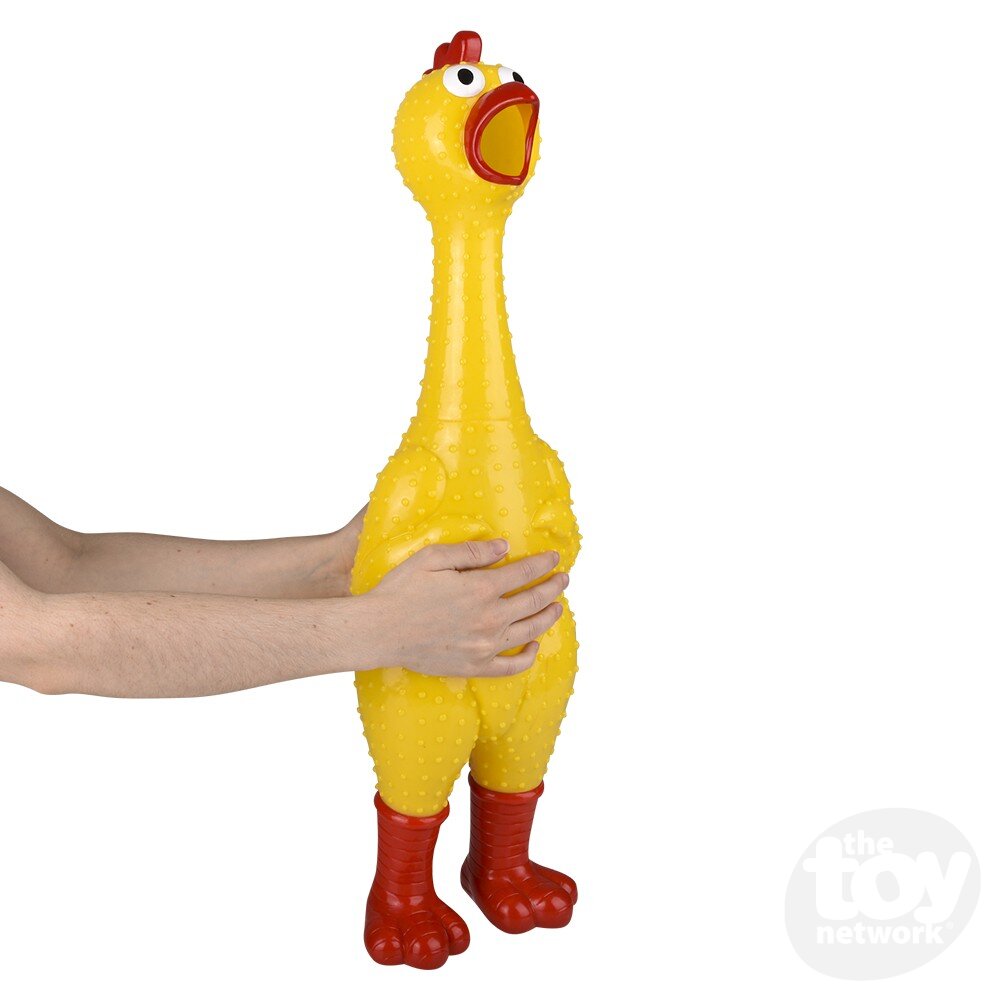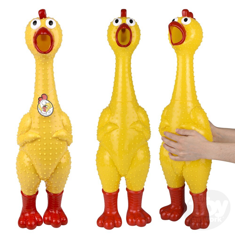 These 24" Giant Rubber Chicken makes a loud screech when squeezed, making it a great gag gift. Its sparkly texture gives it a unique look.