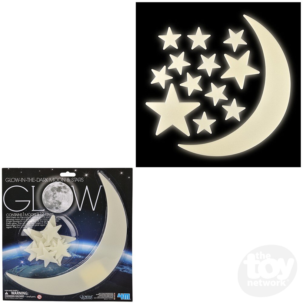 Easily stick these Glow-In-The-Dark Moon & Stars to any wall or ceiling. Great for room decoration. Contains 12 stars and 1 large moon stick-on.