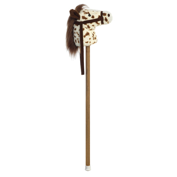 Aurora has a variety of interactive plush toys that elevate playtime and make-believe to the next level! Ride alongside your next favorite partner, this Giddy Up Stick Scot Brown Pinto Horse! Attached to a wooden stick, this pinto horse is white with brown patches spotted throughout. Adding to the realism and fun of this toy, this plush pony can play “gallop” and “neigh” noises.