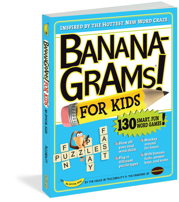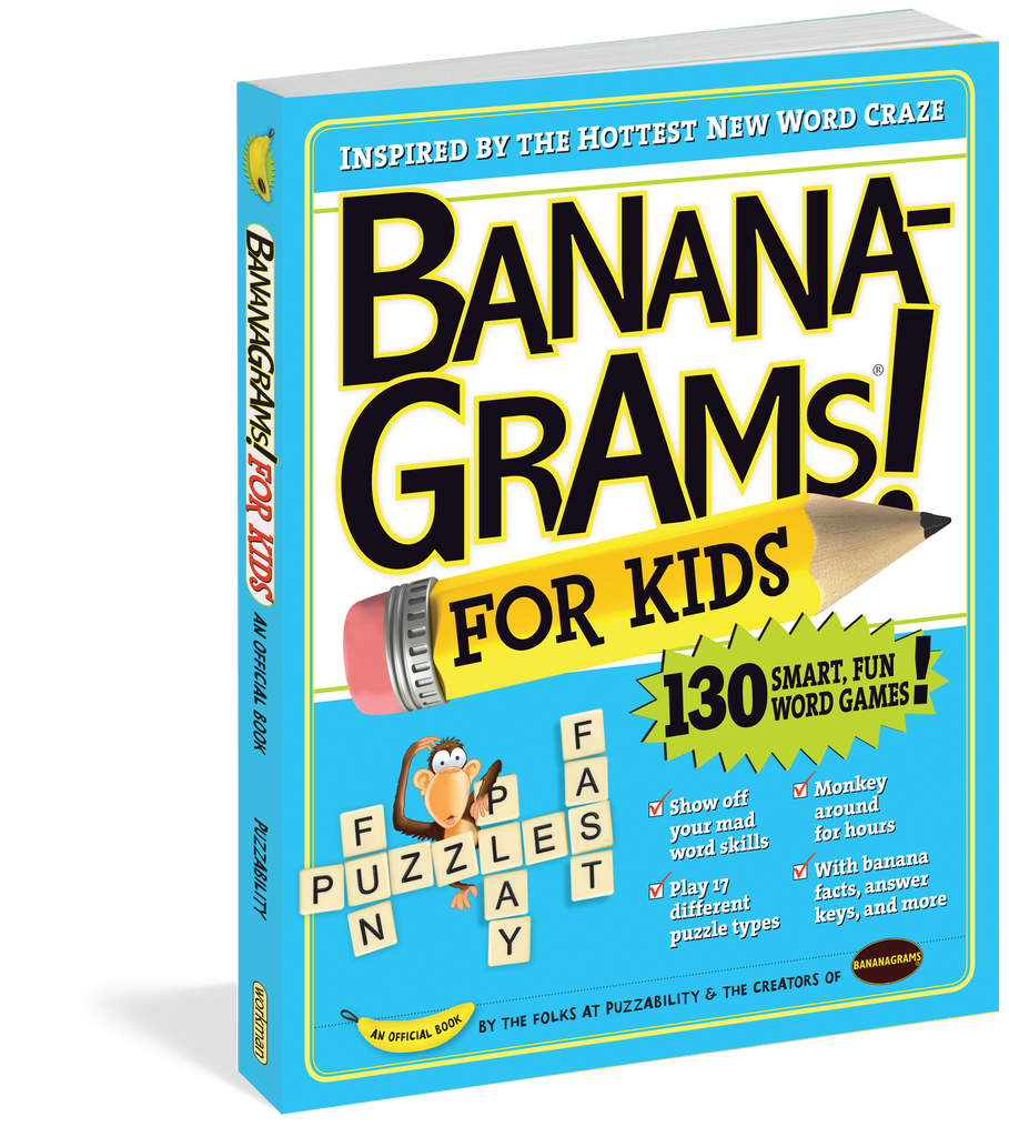 Puzzability, the premier puzzle-writing company who wrote The Brainiest Insaniest Ultimate Puzzle Book! and whose mind-benders have appeared in Disney Adventures, Nickelodeon magazine, The New Yorker, and The New York Times, creates original and unexpected word puzzles that capture the quick-on-your-feet spirit of Bananagrams. There are over a dozen of banana-themed varieties, including Bunched Up (a mini-crossword), Monkey in the Middle (building a larger word out of two smaller words, with clues), Banana Pancakes (a stack of anagrams using letters in common), and Going Bananas (complete a sentence with two different words made from the same letters).