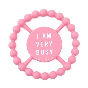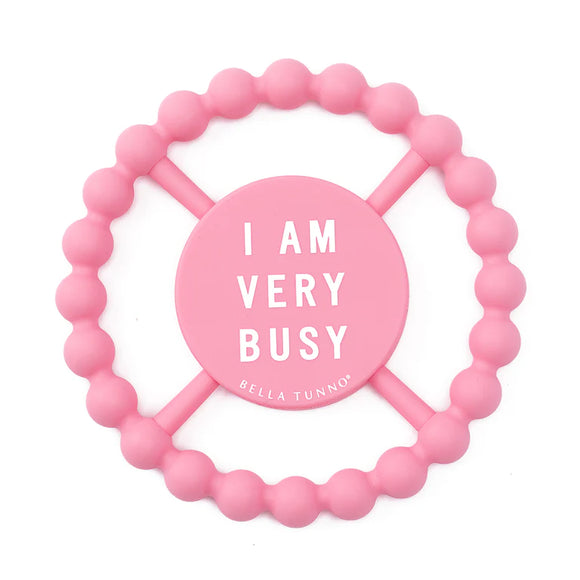 Our baby teething toy is a silicone teether that will soothe sore gums and provide sensory stimulation. We designed this teether with one thing in mind: teething relief for baby that translates into peace and quiet for parents. The silicone beaded material provides an attractive texture for mouthing and teething. The Happy Teether is easy to grip from any angle and gives the right amount of resistance to provide pain relief for early teeth.