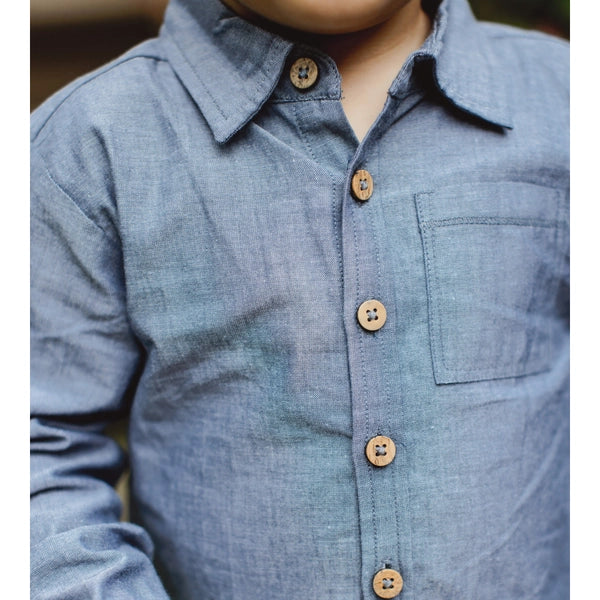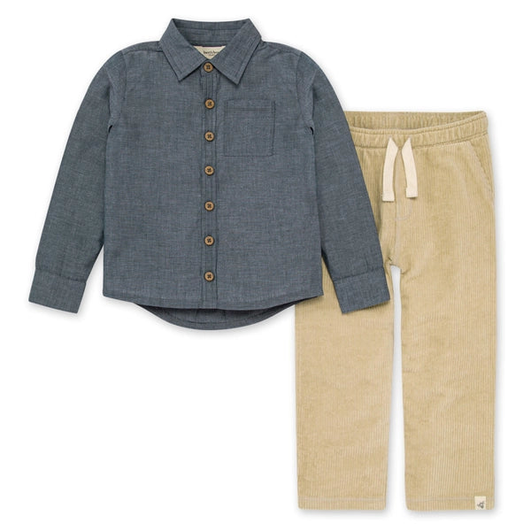 Burt's Bees Organic Baby Chambray Button Down Shirt & Raised Rib Pant Set