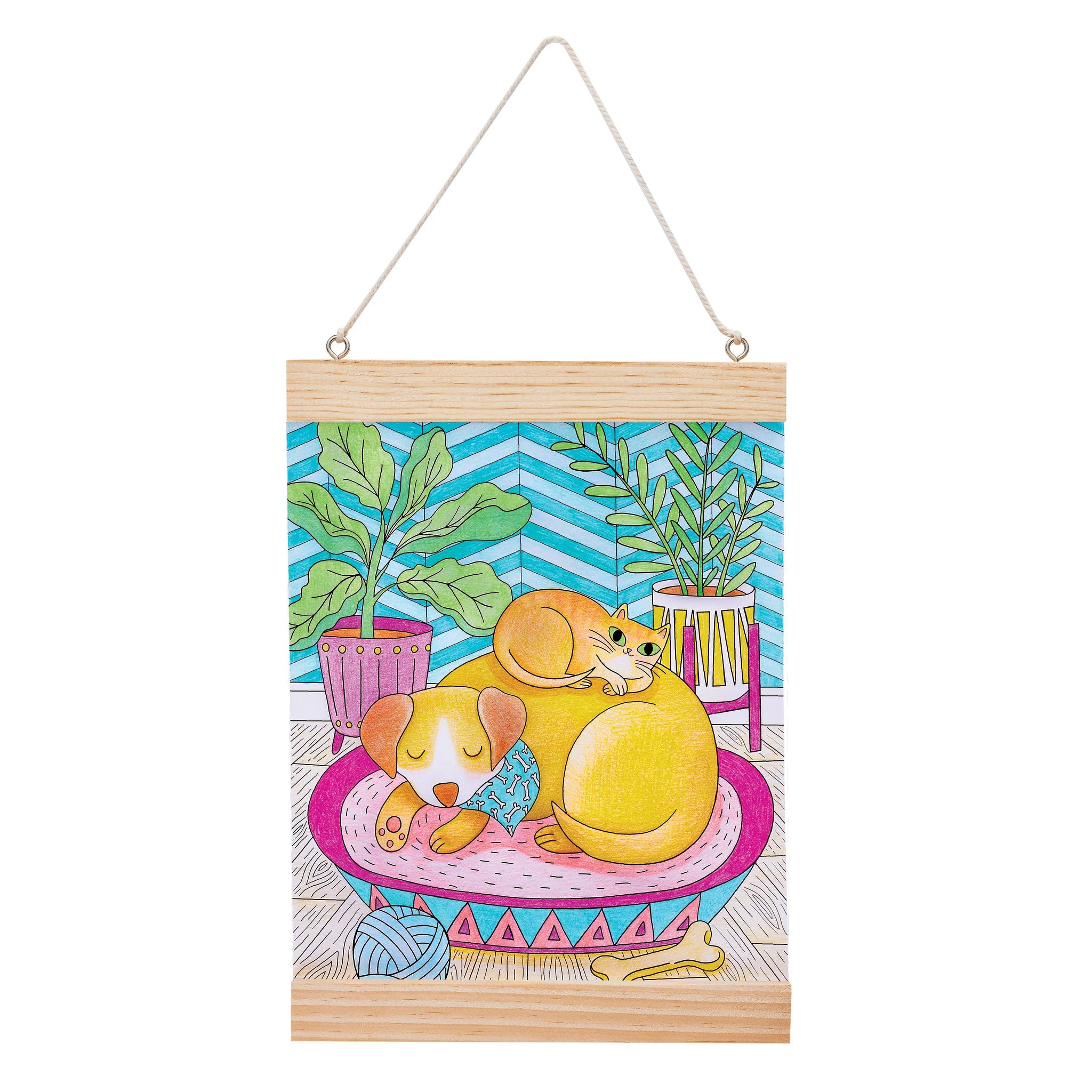 After you are done coloring, use the magnetic frame and hanging string to display! Magnets inside the frame mean there is no need to put holes in your beautiful artwork!