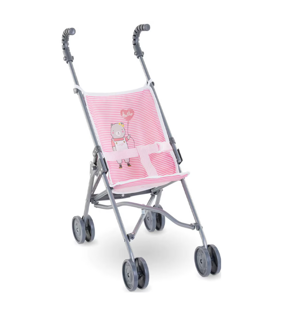 Toddlers can take their adorable dolls and stuffed animals around in comfort with this stylish pink striped umbrella stroller for kids. This toy stroller has an adorable striped print on a nylon fabric seat and frame with safety buckle. Doll umbrella stroller easily folds and unfolds.