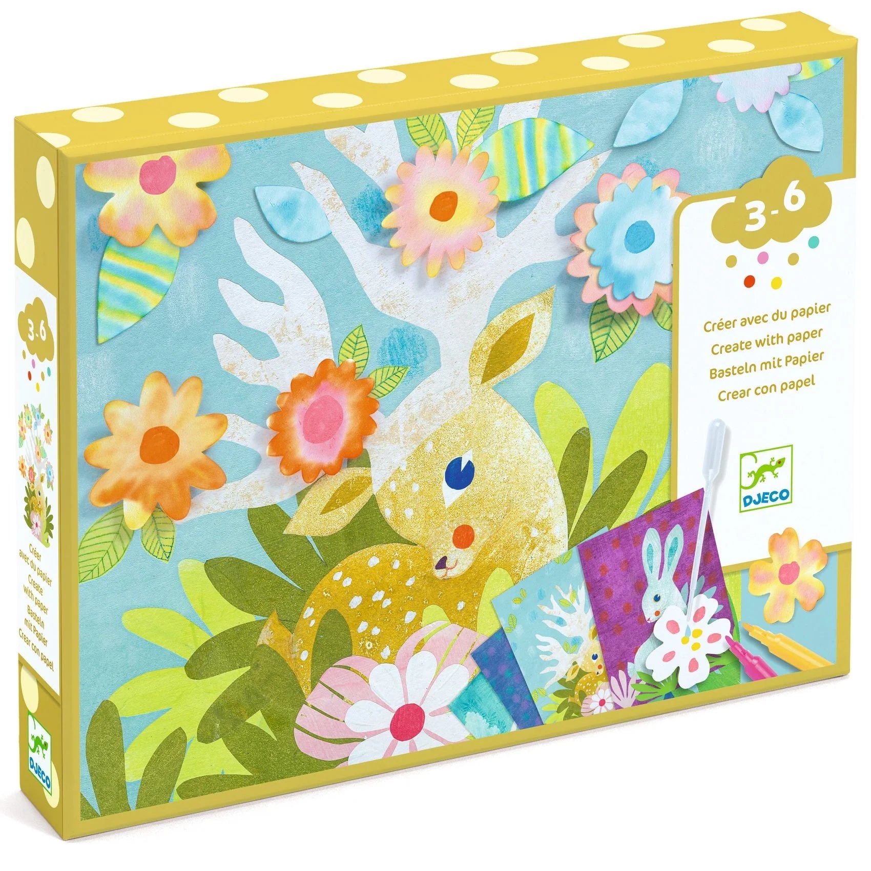 An all-new early experience for ages 3 and up. Tear off a shape from the blotting paper and place it on the absorbent paper. Make a few dots with the pen and add a drop of water using the pipette: The ink will start to spread... The results are incredible! Once the drawing is dry, use double-sided tape to stick it on the illustrated backgrounds and decorate your room.