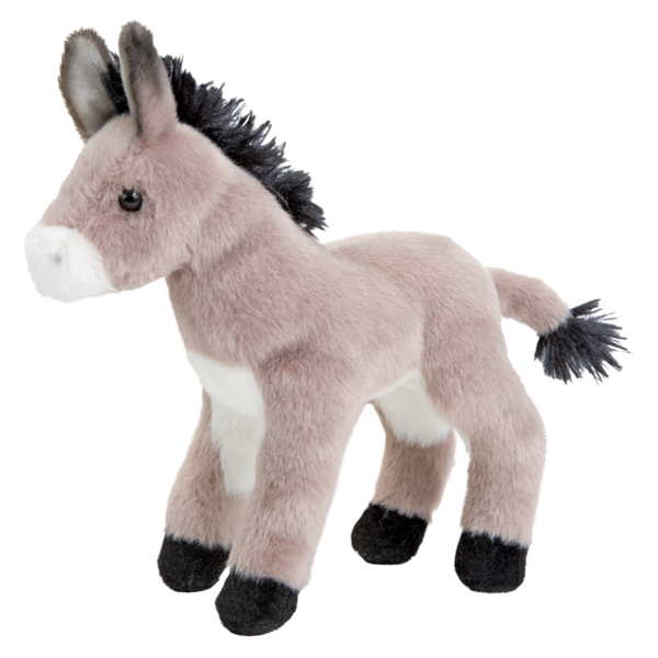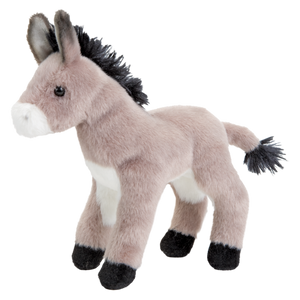 At 8" tall, Bordon the stuffed burro features realistically colored gray and white plush with a black and black hooves.