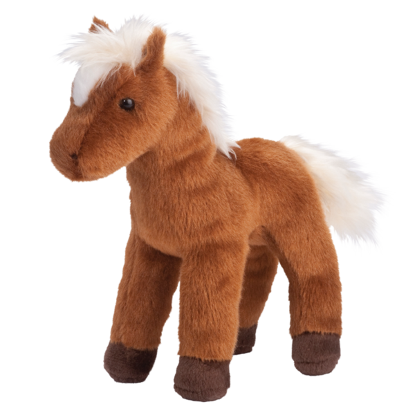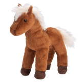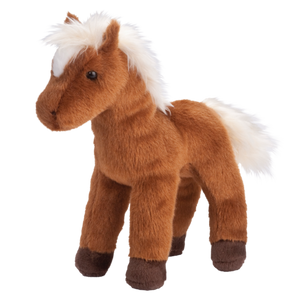 At 8" head to hoof, Mr. Brown has the characteristic reddish-brown chestnut coat, a white mane and a cute little white spot on his forehead.
