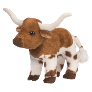 6" tall stuffed Mini Longhorn, Zeb, is sweet and realistic with classic brown and white coloring. Plush Longhorn is perfect for play, cuddling or any adventure!