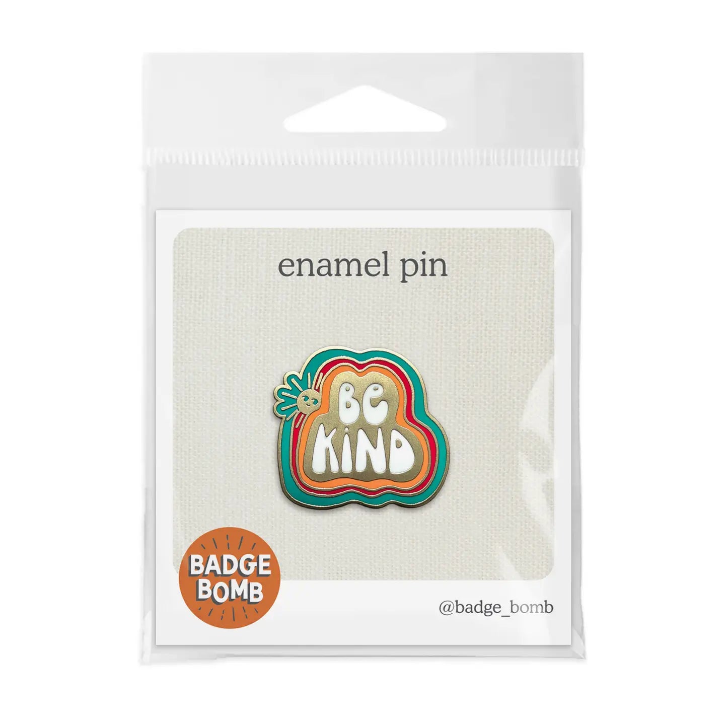 Be Kind Enamel Pin by Allison Cole. Hard enamel with satin gold metal finish. One back post with butterfly clasp. Measures approximately 28mm x 26mm.