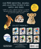 Each book contains 400 full-color stickers that are amazingly detailed and lifelike in quality and are designed to be stuck on, peeled off, and stuck on again without tearing or losing their “stick.” The books’ inside covers are glossy illustrated backgrounds on which kids can create lively and original sticker scenes—and then change them whenever they like.
