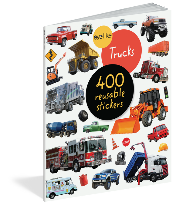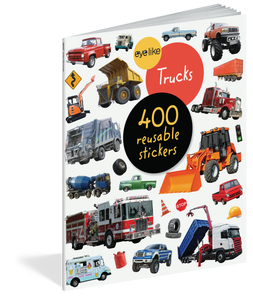 EyeLike Stickers: Trucks features hundreds of vehicle stickers that will delight construction fans and invite imagination and play. See trucks of all sizes, scales, and types—ice cream trucks, fire trucks, pickups, and garbage trucks. Plus, traffic cones, streetlights, road signs, and equipment like helmets, wrenches, and safety vests will provide hours of fun to kids who are enthusiastic about construction or building.
