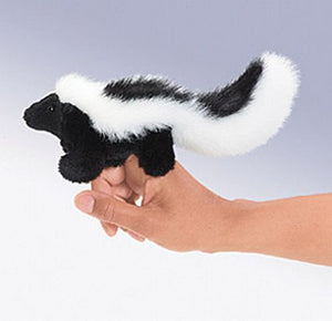 Raise a stink with this MINI SKUNK finger puppet! Or simply sit quietly and play. You see, the less alarming you are to him, the less alarming he'll be to your nose. Scent glands not included.