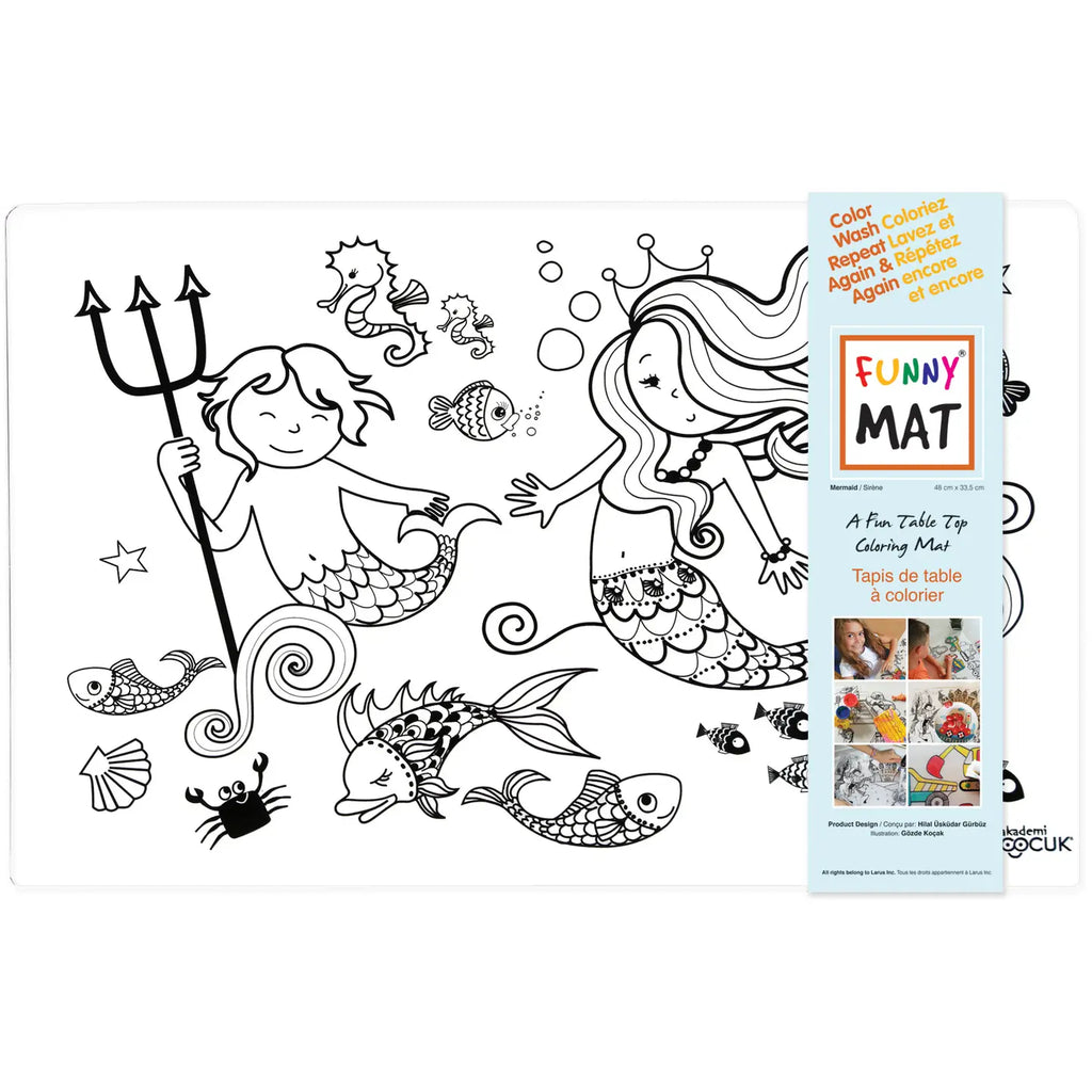 Funny Mat is a table top cover that can be used for craft projects such as drawing, coloring or as a protective mat for painting, plasticine and play dough or as a placemat. The designs on Funny Mat can be colored with water-based, washable markers. Funny Mat is made of polyproylene and is recyclable and reusable. Each mat size is 33.5 x 48 cm (13.2" x 18.9").
