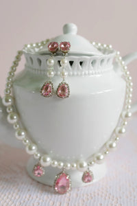Bold pink gems pair with soft and elegant pearls in The Coco 4-piece jewelry set. This beautiful boxed-set includes dangly clip-on earrings, a heart-shaped ring, and a coordinating pearl necklace with jeweled tear-drop charms.Ages 3+