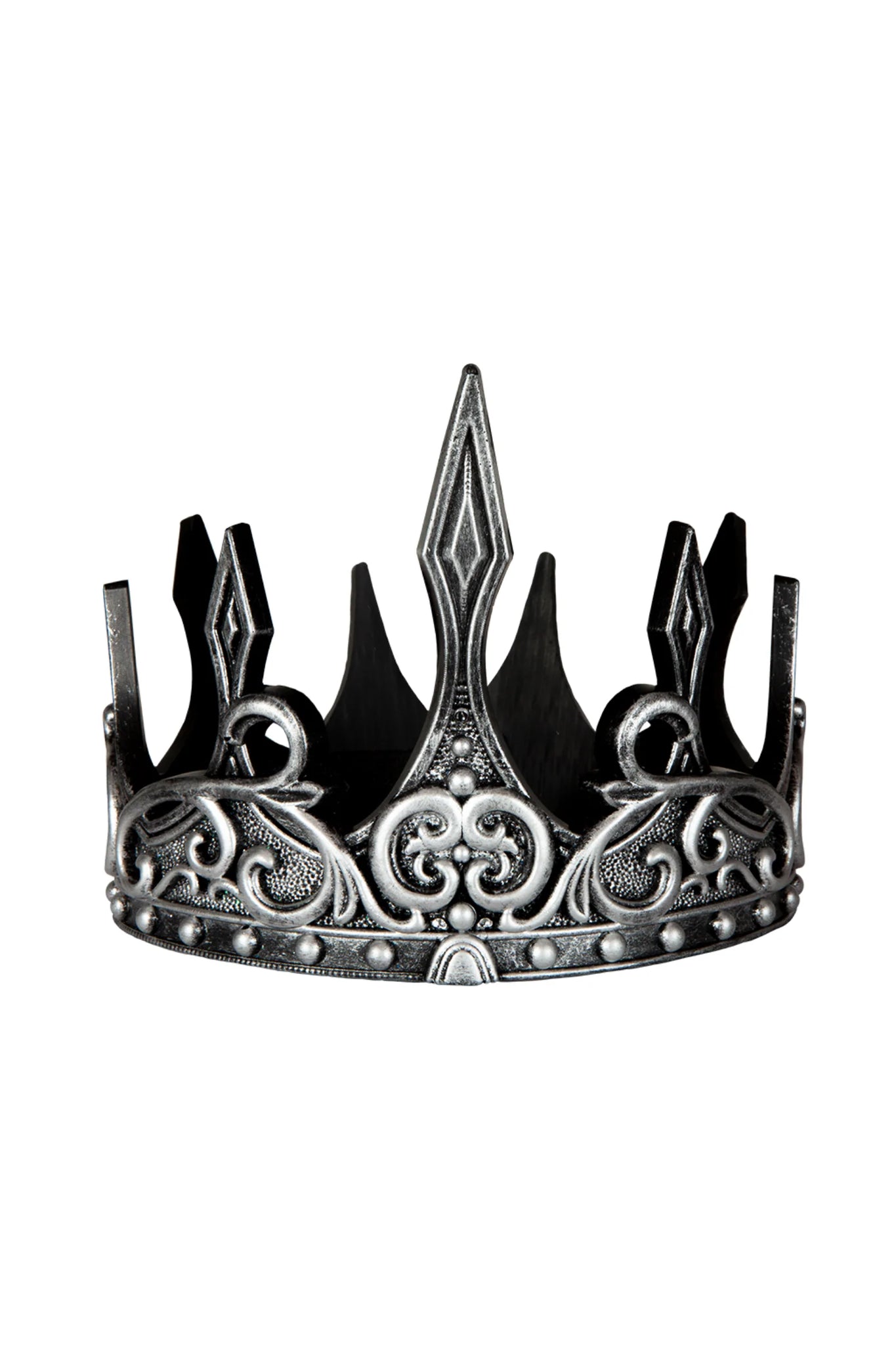 Be the king or queen of the castle with this silver medieval crown. Accented with black, this crown is made from a flexible rubberized/coated EVA foam for extra comfort. These crowns are durable and excellent quality! Size flexible from kids to adults with sewn in Velcro.