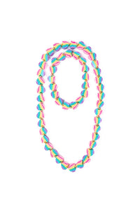 Brighten your little ones day with the Heart of Many Colors Necklace & Bracelet Set! This delightful set features vibrant rainbow heart-shaped beads, perfectly accented by shining gold beads between each one. The cheerful design adds a pop of color and charm to any outfit, making it the perfect accessory for playtime, parties, or everyday fun. A sweet and stylish way to celebrate love and joy in every color!