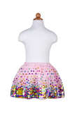 Be the life of the party in this fun multi-colored sequined skirt. Perfect for days of celebration or for dancing around the house. This soft pink skirt is covered in rows of rainbow sequins and finished with a satin bow at the waist.