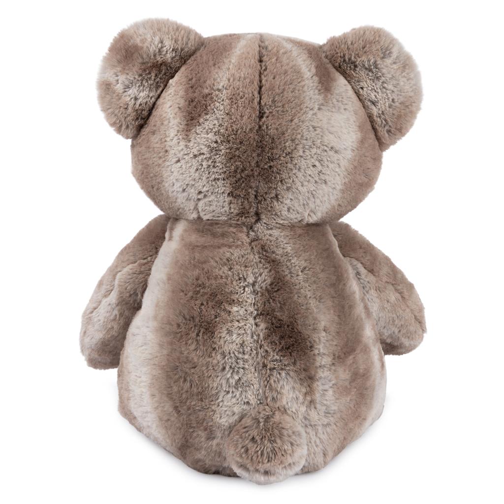Mukki's a special bear who loves the outdoors so much so that his fur resembles the trees! He loves to run around the forest, making new friends of all sorts and playing games along the way. Mukki prides himself in being a good friend to others and always coming up with the latest fun games and ways to spend a long day in the woods. Mukki is also a cuddle buddy who is prepared for every season, sporting his lovely, thick plush coat that he knows makes the best snuggles! This plump bear is super-stuffed and extra-squishy, boasting woodgrain-inspired two-tone plush fur, a dark brown corduroy nose, and a cream-colored muzzle and paws. Mukki's tummy is full of extra-squishy stuffing that makes him perfect for super-sized hugs, and he's designed with oversized, mitten-shaped paws that are perfect for grabbing (and tending to his garden or foraging through the forest in search of the perfect tree to climb)! This bear also sits balanced on any flat surface and boasts floppy arms and legs perfect for posing. Mukki's a perfect snuggly pal for collectors and cuddlers of all ages! Mukki is surface-washable and appropriate for ages 1 and up. Do not machine-wash or use harsh chemical cleaners. Mukki is available in two squeezable sizes: 11" and 16".