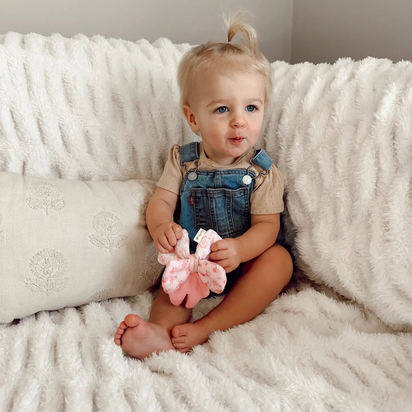 Get ready for double the fun with the Sweetie Crinkle™! This adorable essential combines a soothing silicone teether with soft plush and crinkle sounds. It is sure to delight your little one’s senses!