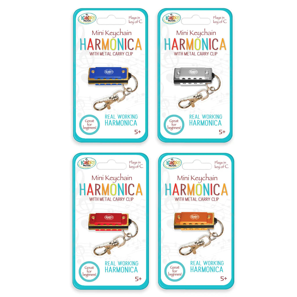 KaKo’o™ Mini Keychain Harmonicas are great for beginners to masters. Our 4-hole 8 notes diatonic harmonicas are suitable for Blues, Folk, Rock, Country, Jazz and so many more! Great for musical travelers on the go, the exquisite workmanship, beautiful appearance, accurate tone and responsiveness are what make a KaKo’o Harmonica the only one you will ever need. Come make music with KaKo’o™ Harmonicas! Ages 5+ Each Mini Keychain Harmonica Set comes with 1 x Mini Harmonica (key of C), 1 x Keychain and Ring Color Options: Blue, Gold, Red, Silver. Color randomly selected.